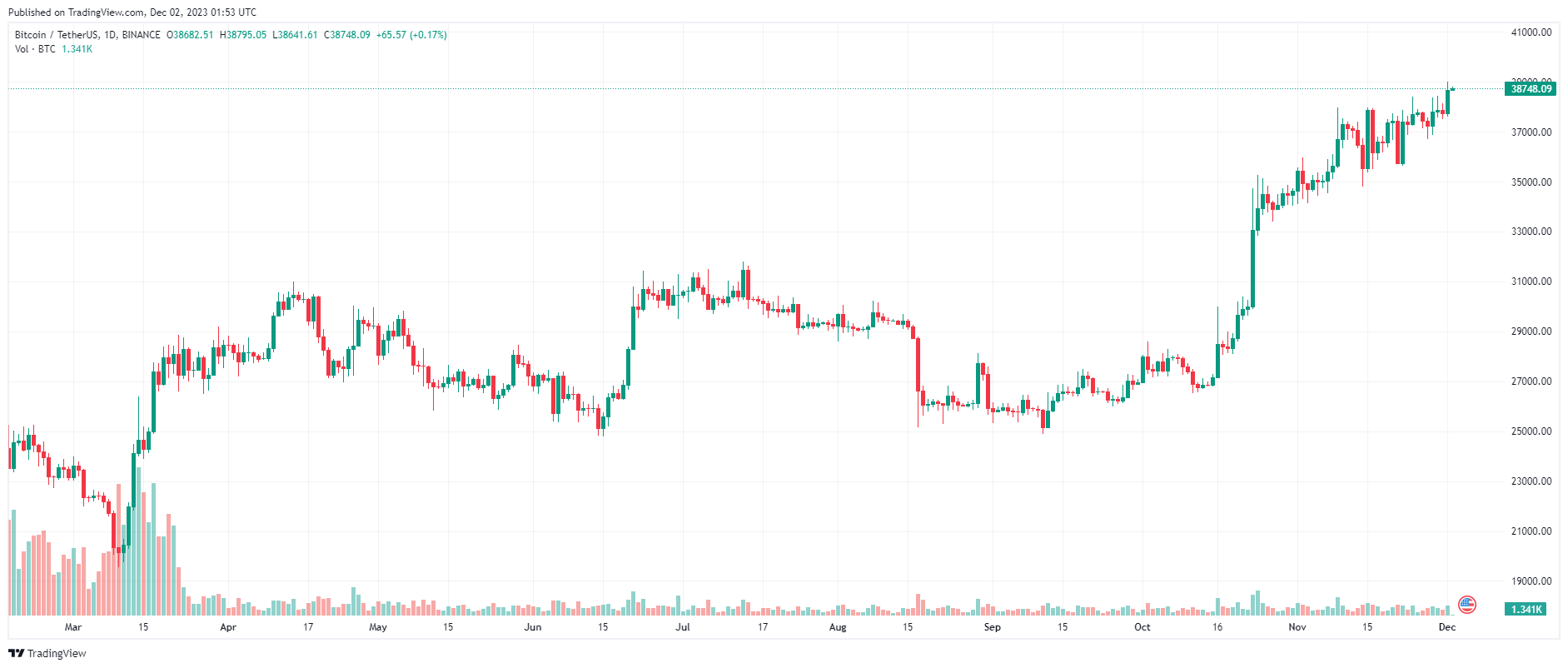 Dữ liệu từ TradingView đã xác nhận mức giá đỉnh mới của Bitcoin trong 19 tháng qua tại $ 39.000.