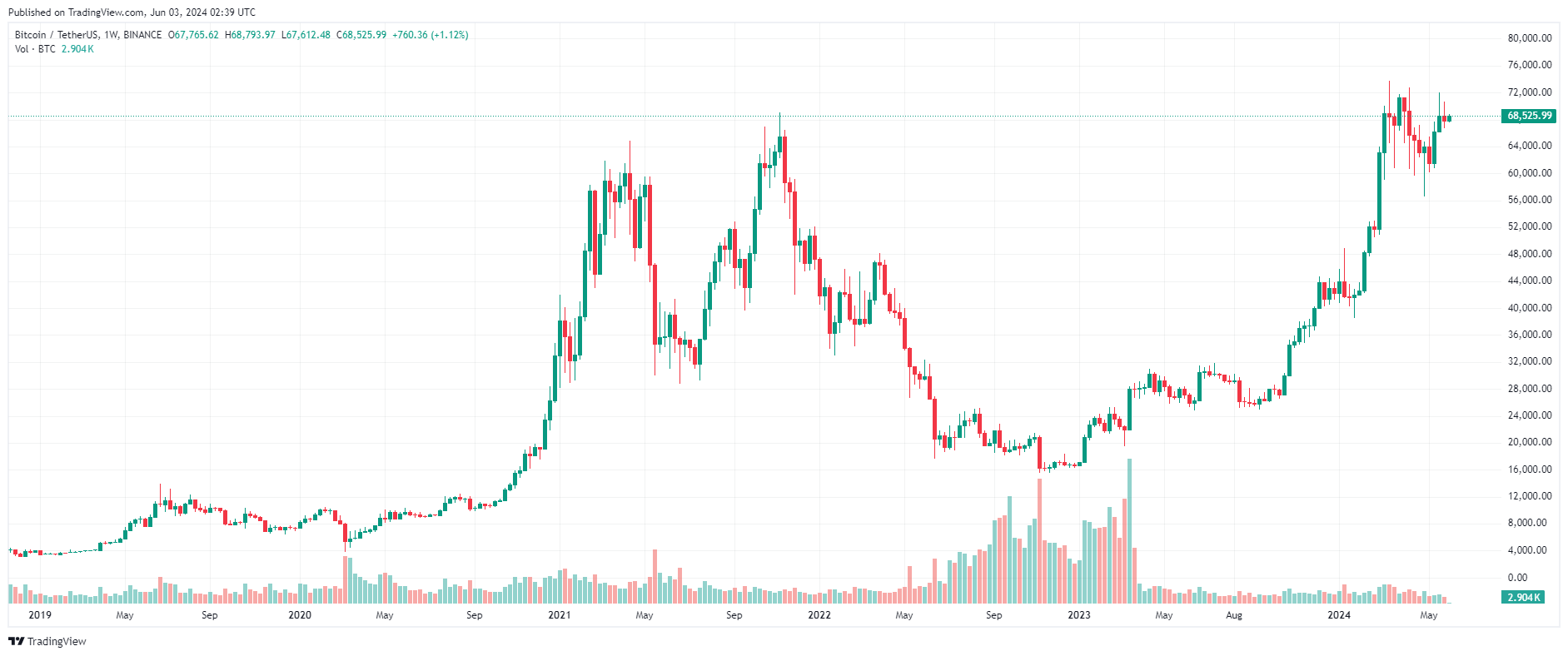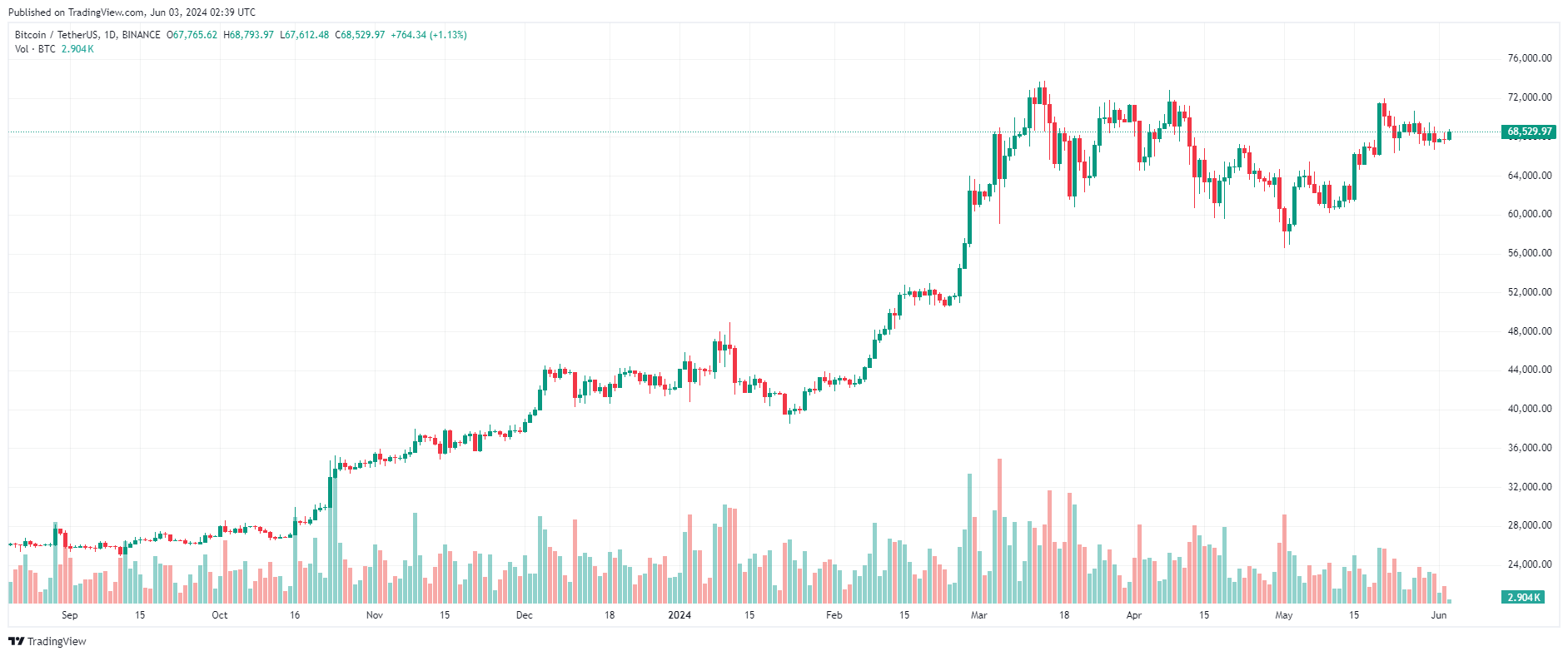 Thị trường đã bước vào trạng thái tích luỹ trong suốt tuần qua, với hành động giá đi ngang quanh khu vực $ 68.000 với khá ít sự biến động.
