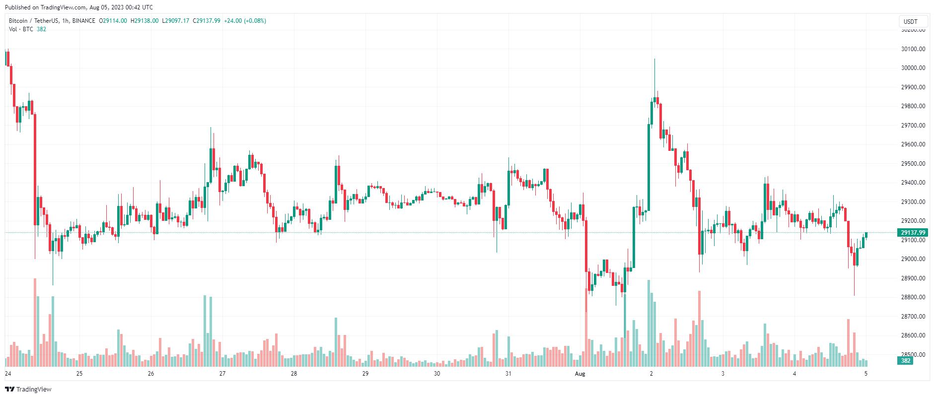 Bitcoin tiếp tục có hành động giá ảm đạm sau khi trượt về $ 29.800 trong thoáng chốc.