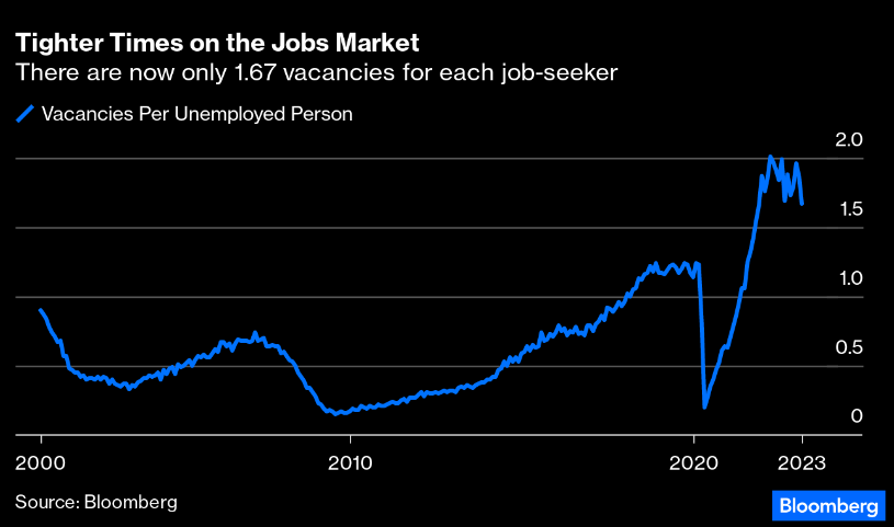 Vị trí tuyển dụng của Hoa Kỳ cho mỗi người tìm việc | Nguồn:Bloomberg
