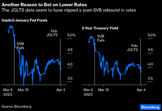 Tỷ lệ quỹ liên bang cho tháng 1/2023 đã giảm sau khi dữ liệu JOLTS mới nhất được công bố, tương tự trong bối cảnh các ngân hàng phá sản vào tháng 3.