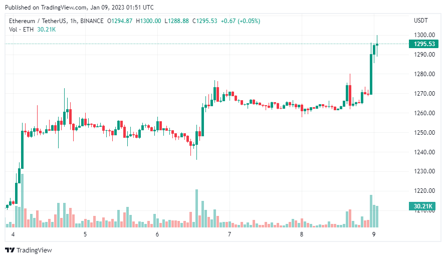 Ethereum thành công trụ vững $ 1.250 và hiện đang tiến sát đến ngưỡng $ 1.300 với mức tăng 2,5% trong ngày. Hiện token hợp đồng thông minh lớn nhất thị trường đang được giao dịch quanh $ 1.295.