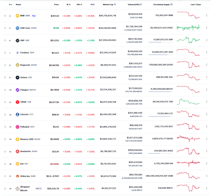 Thị trường altcoin gần như đi ngang khi BTC tiếp tục được giao dịch quanh $ 26.500.