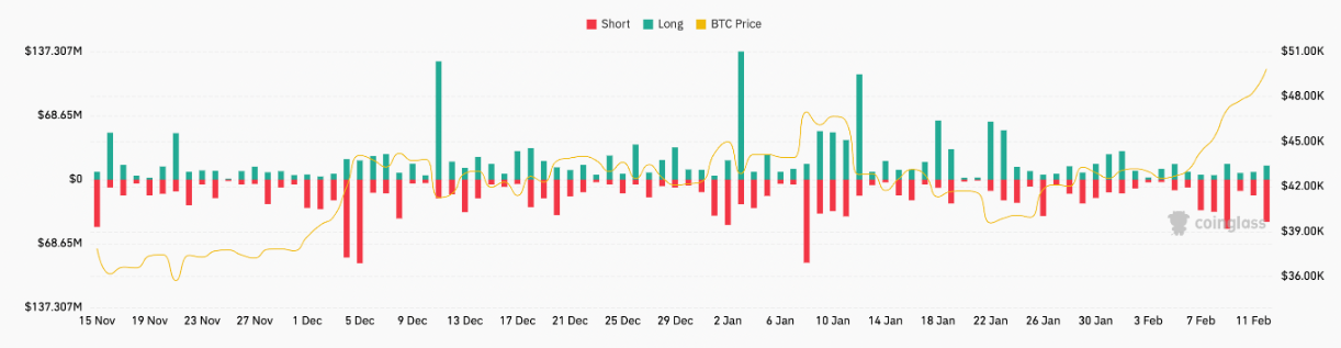 Bitcoin vượt ngưỡng $ 50.000 vào ngày 12/2 lần đầu tiên kể từ tháng 12/2021, sau chuỗi dòng vốn vào quỹ ETF tích cực trong tuần trước.