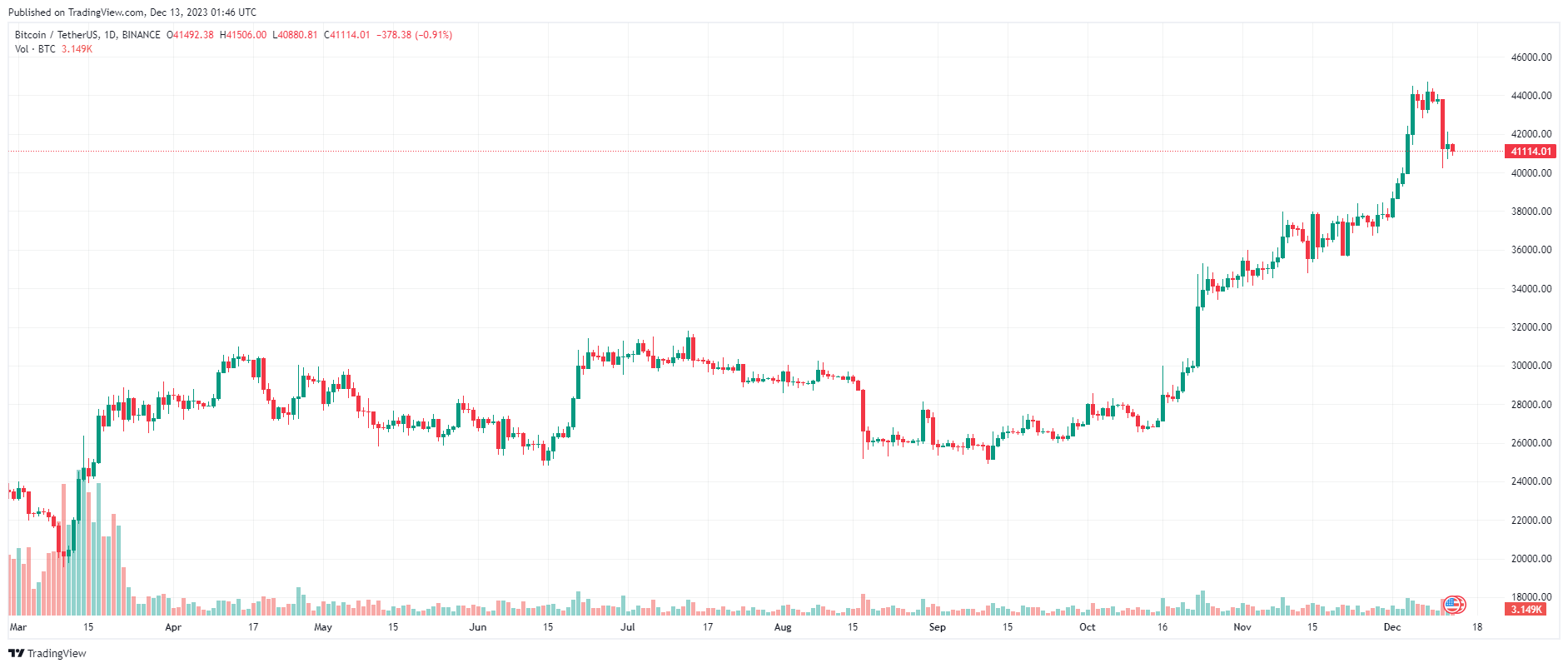Biểu đồ giá BTC – 1 ngày | Nguồn: TradingView
