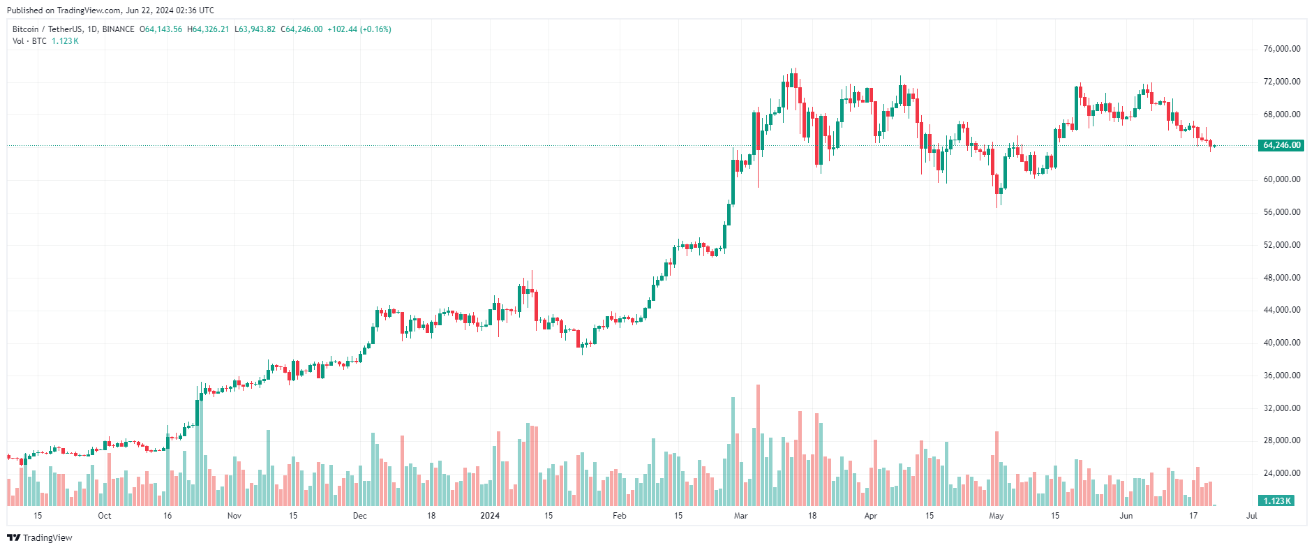 Bitcoin đã trải qua đợt giảm giá mạnh về dưới $ 64.000 vào ngày 21/06.