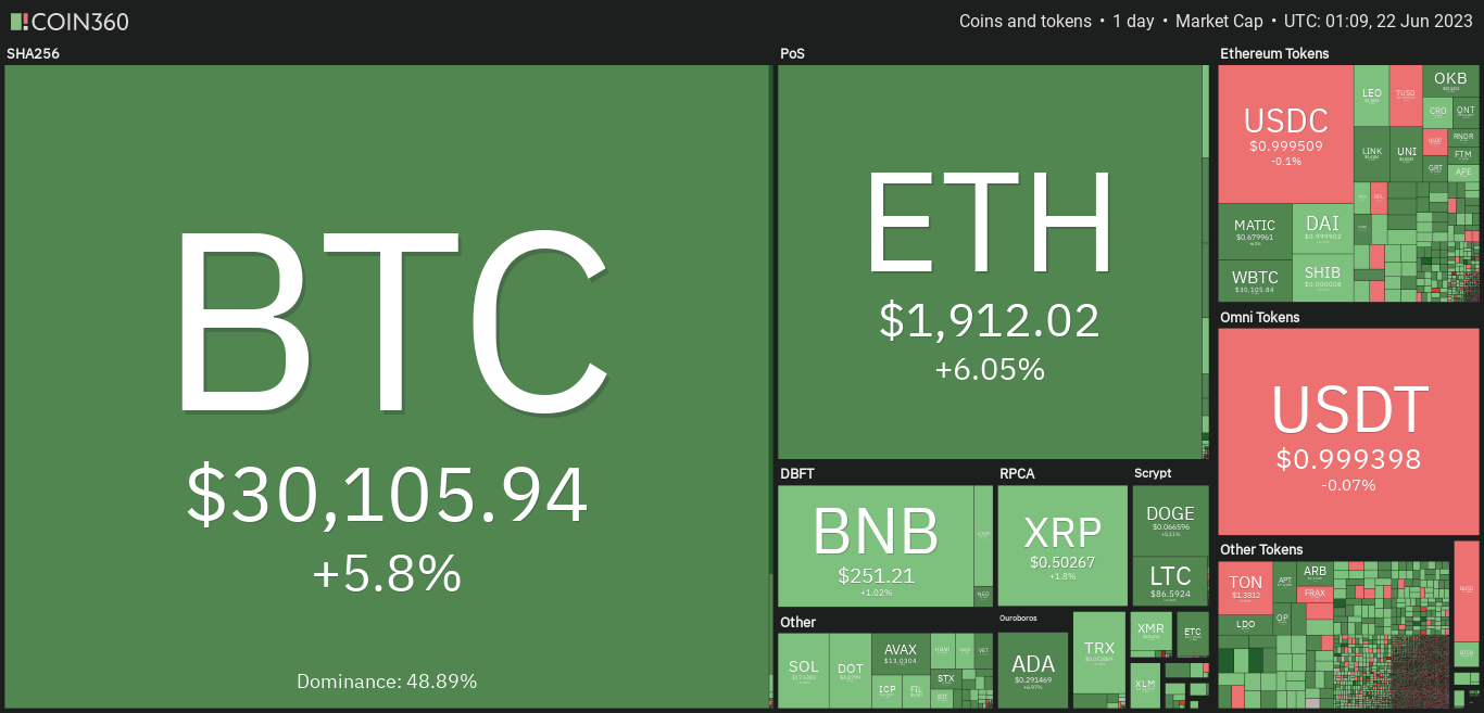 Thị trường altcoin ngập sắc xanh khi BTC cho thấy đà tăng mạnh mẽ vượt mốc $ 30.000.