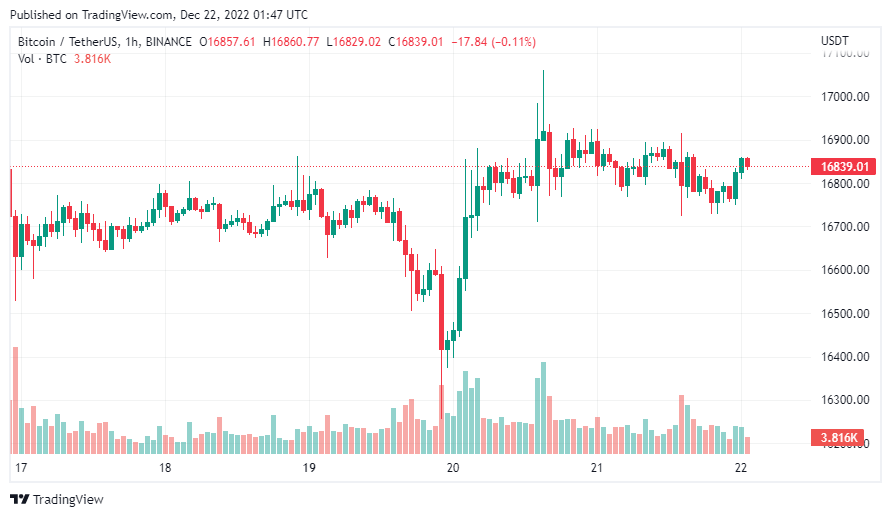 Bitcoin tiếp tục đi ngang quanh $ 16.800 trong ngày 21/12 khi vẫn chưa có bất kỳ tín hiệu rõ ràng nào cho xu hướng sắp tới.
