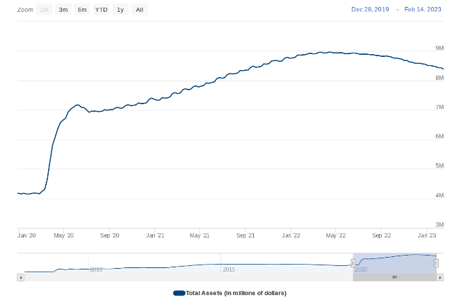 Biểu đồ bảng cân đối kế toán của Fed | Nguồn: Cục Dự trữ Liên bang Mỹ