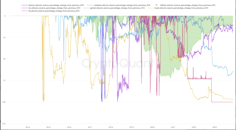 Dự trữ Bitcoin của các sàn giao dịch so với mức ATH | Nguồn: CryptoQuant