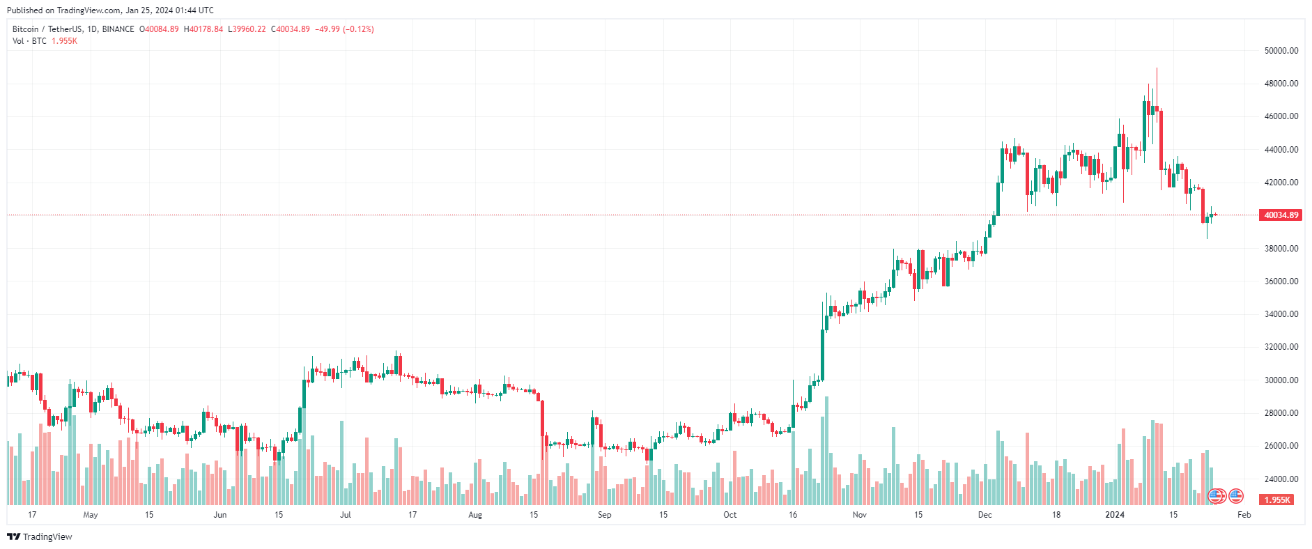 Biểu đồ giá BTC – 1 ngày | Nguồn: TradingView