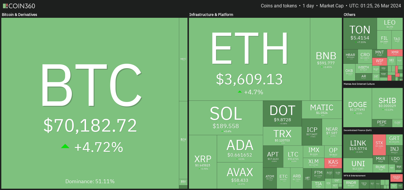 Bitcoin thành công đòi lại ngưỡng $ 70.000 khi thị trường xuất hiện tín hiệu tiếp tục đà tăng sau đợt điều chỉnh.