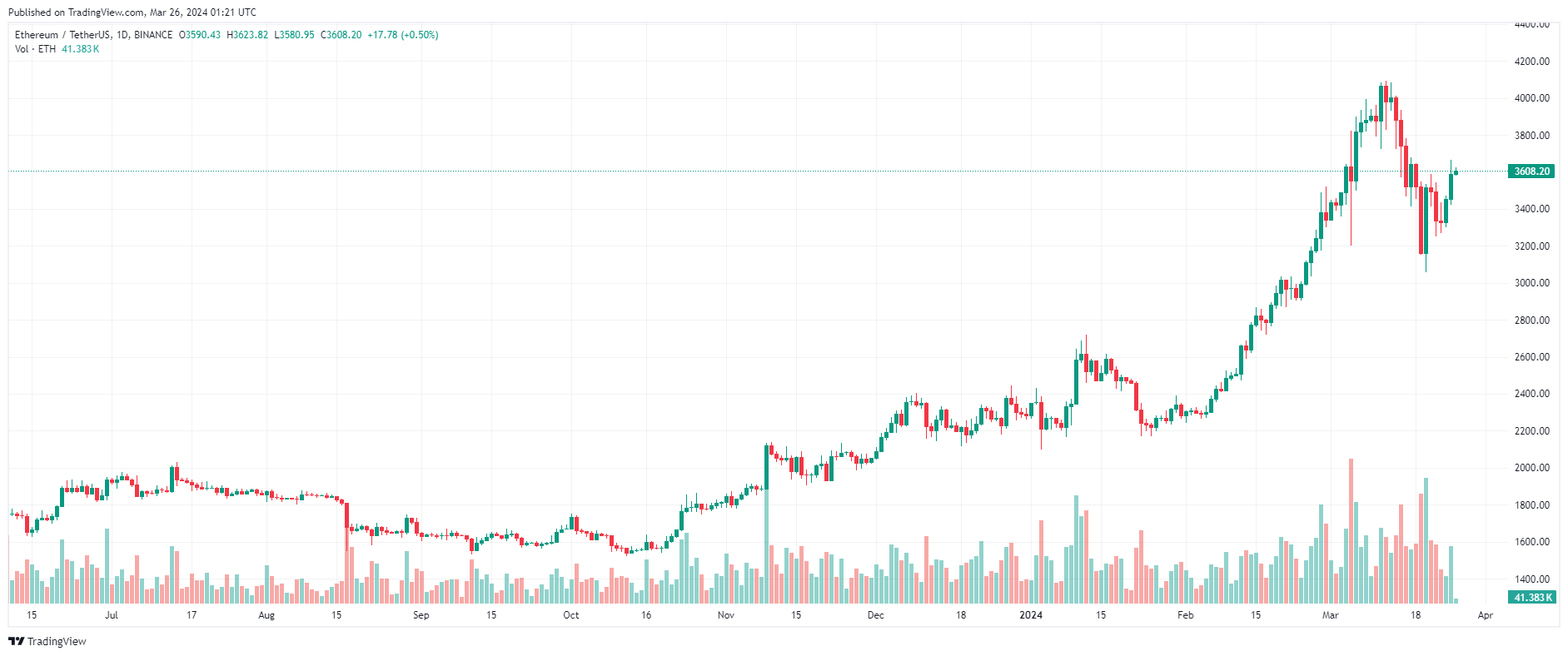 Biểu đồ giá ETH – 1 ngày | Nguồn: TradingView