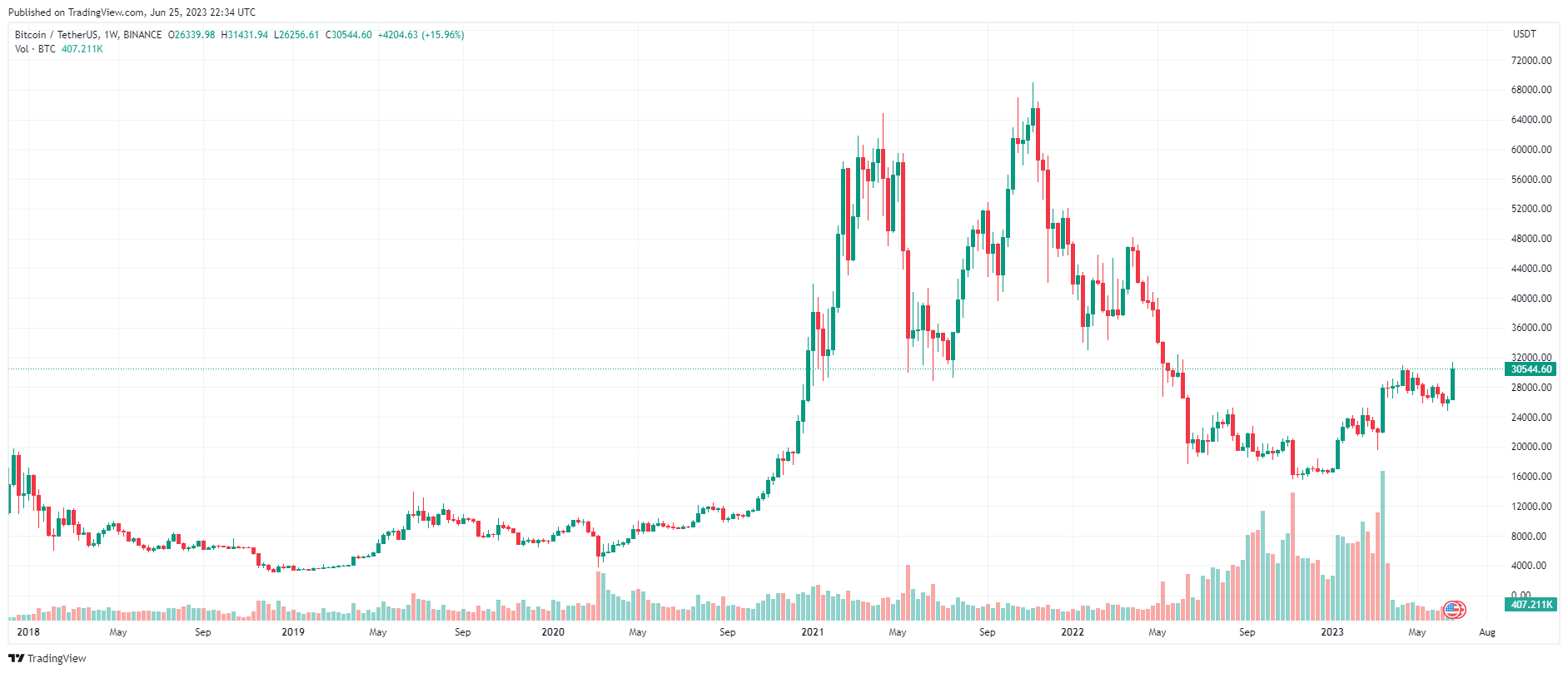 Biểu đồ giá BTC – 1 tuần | Nguồn: TradingView