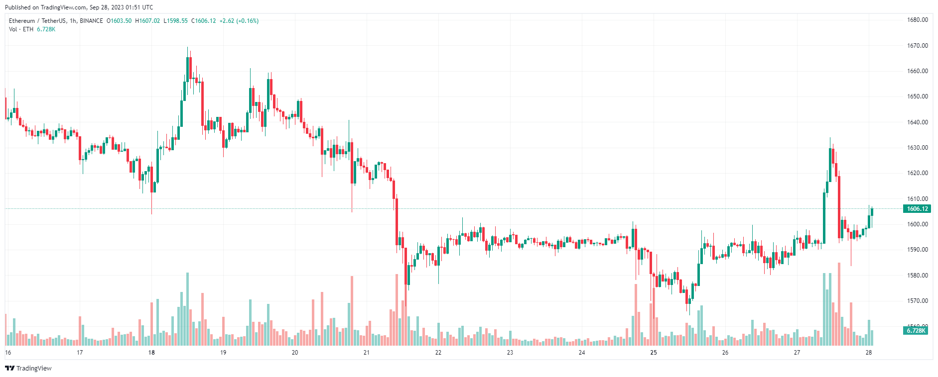 Biểu đồ giá ETH – 1 giờ | Nguồn: TradingView