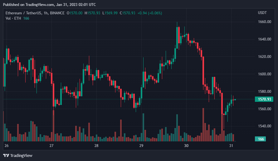 Biểu đồ giá ETH – 1 giờ | Nguồn: TradingView