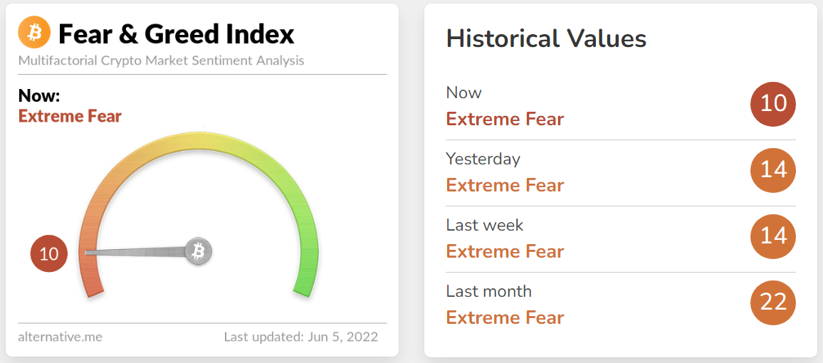 Nhìn chung, màu xanh mà thị trường đang chứng kiến của cả Bitcoin altcoin đều không vững chắc và rất dễ chuyển đỏ bất cứ lúc nào khi tâm lý nhà đầu tư đang rất yếu với chỉ số sợ hãi và tham lam crypto hiện đang ở mức 10, báo hiệu cực kỳ sợ hãi.