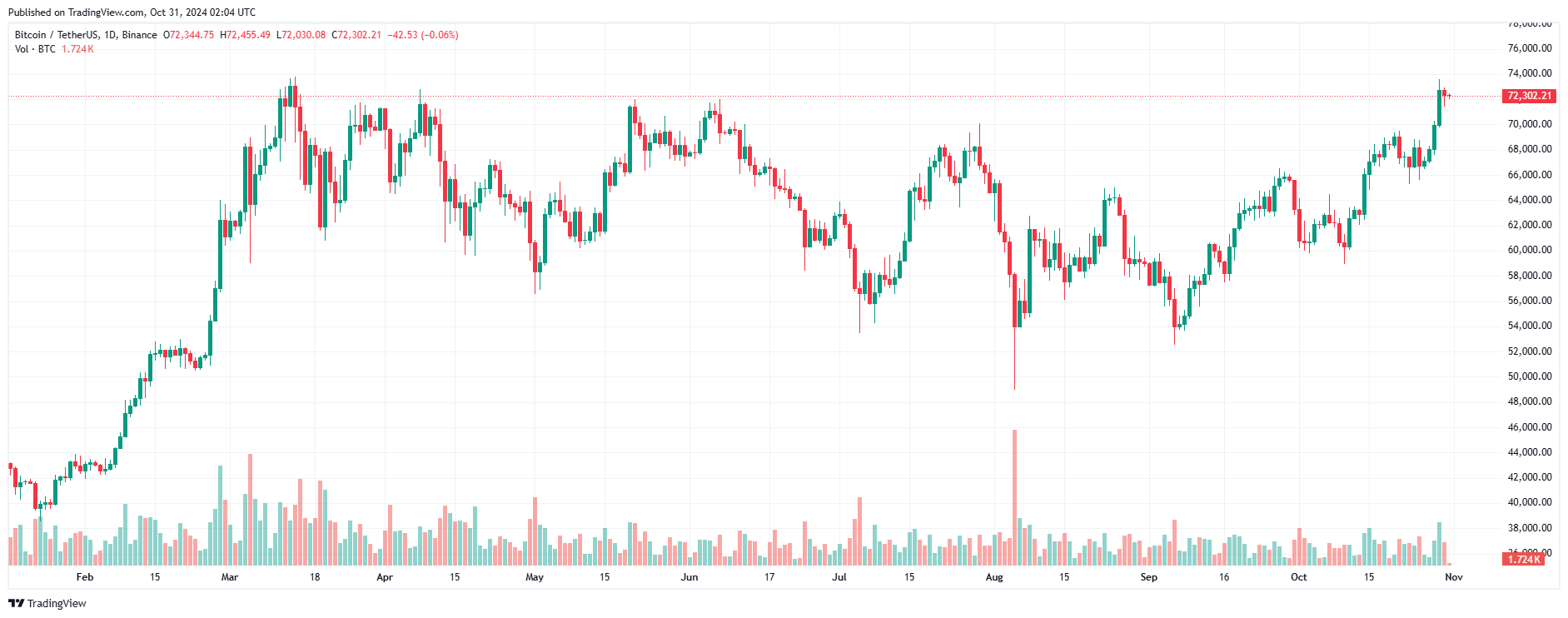 Bitcoin vẫn đang nỗ lực duy trì giá trên mốc $72.000 với hy vọng về một đợt tăng trưởng mới hướng đến ATH.