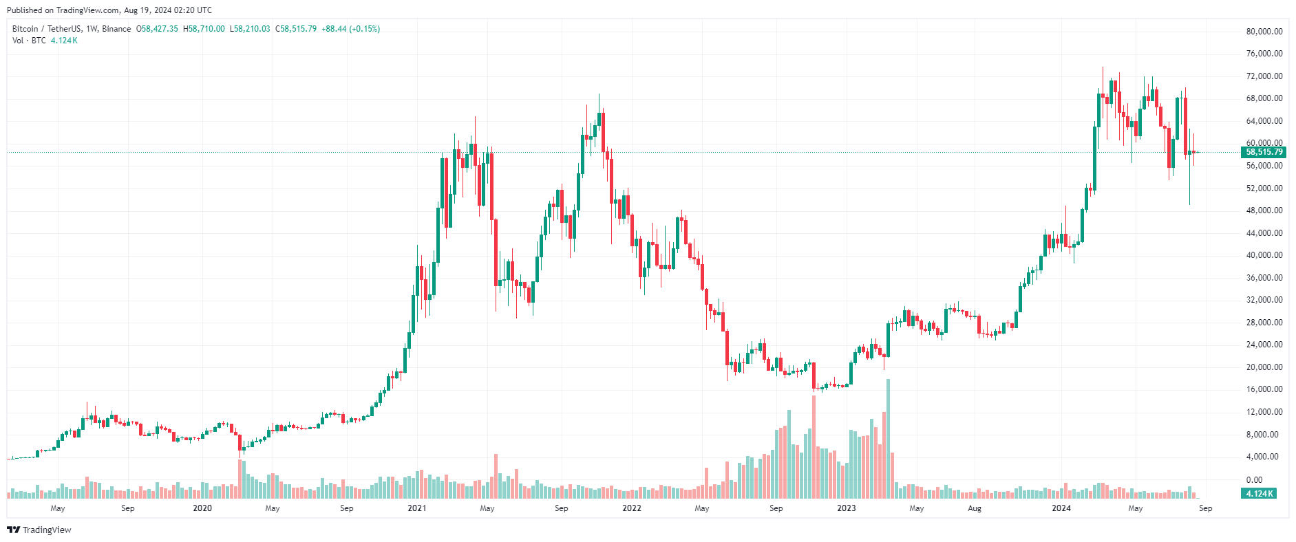 Biểu đồ giá BTC – 1 tuần | Nguồn: TradingView