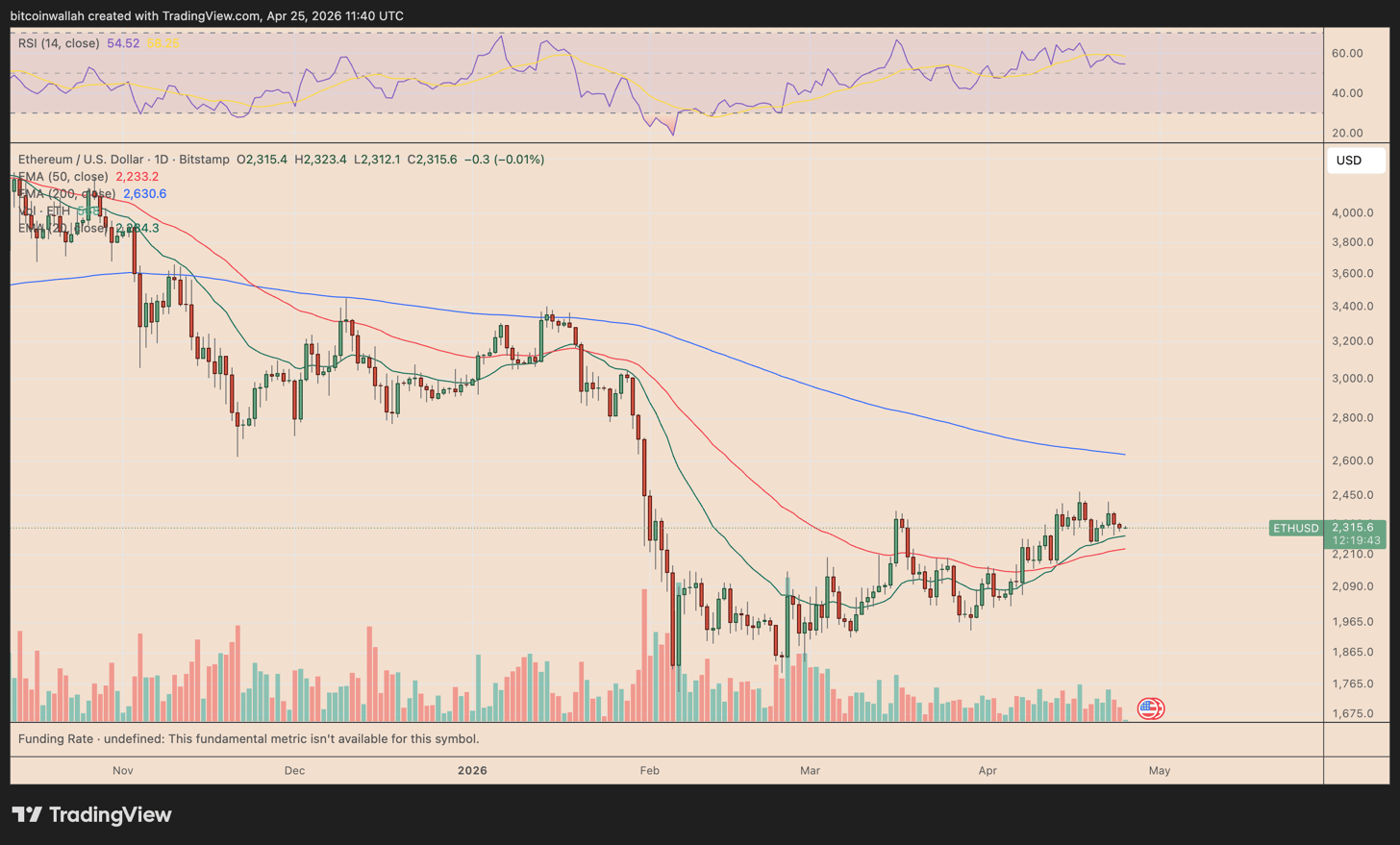 Biểu đồ ETH/USD hàng ngày. Nguồn: TradingView
