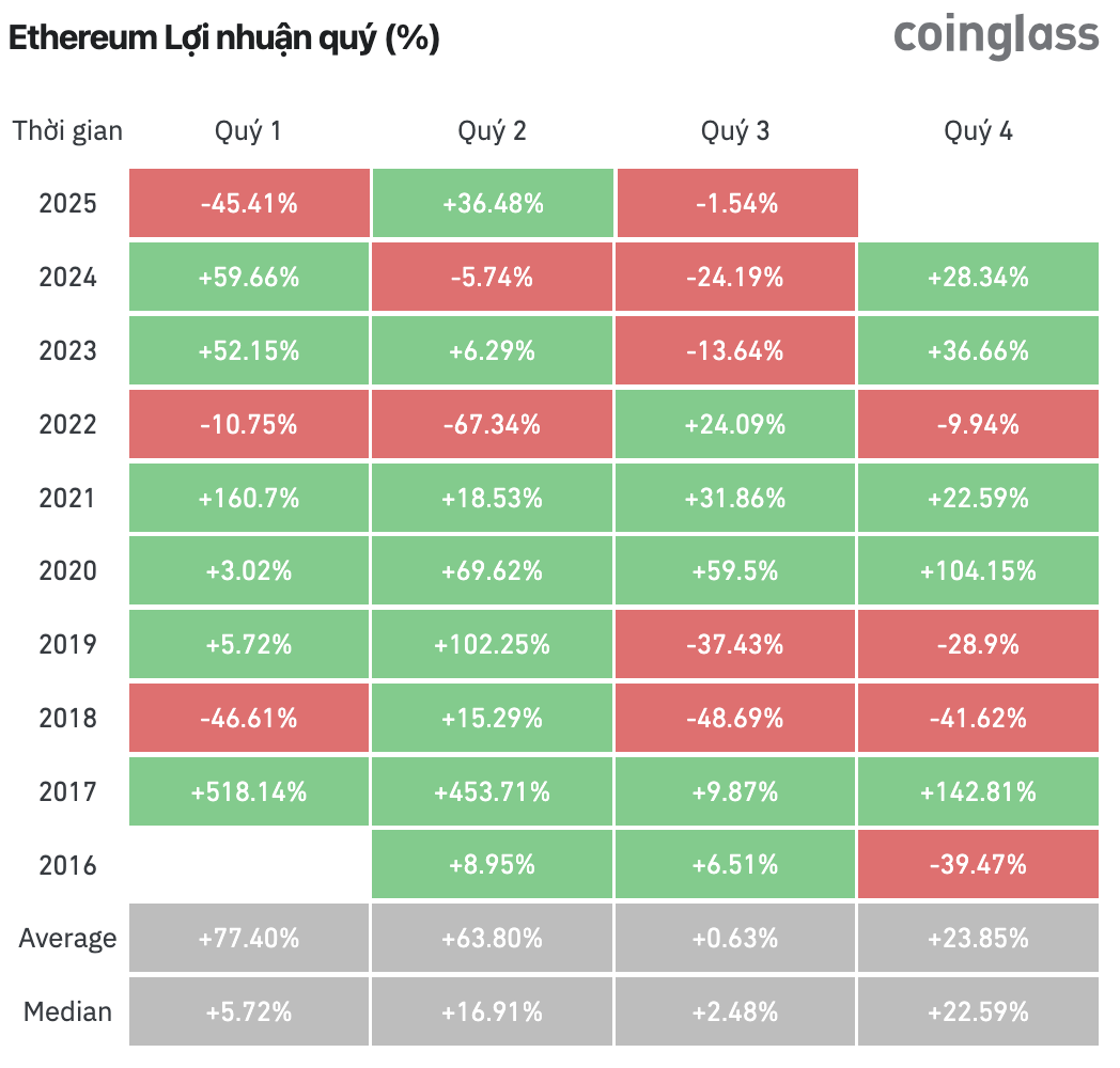 Lợi nhuận hàng quý của ETH | Nguồn: Coinglass