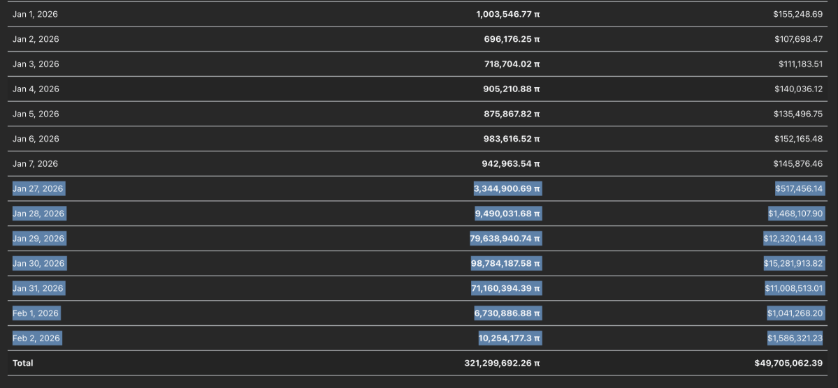 Không dừng lại ở đó, khoảng 279,40 triệu PI đã được chuyển từ testnet sang mainnet của Pi Network, qua đó cho phép người dùng đưa các token đang bị khóa lên một số sàn giao dịch tập trung được lựa chọn. Trong bối cảnh niềm tin thị trường đang suy yếu, những đợt chuyển đổi và mở khóa như vậy thường trở thành chất xúc tác làm gia tăng áp lực bán.