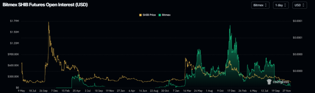 Biểu đồ khối lượng hợp đồng mở SHIB | Nguồn: Coinglass