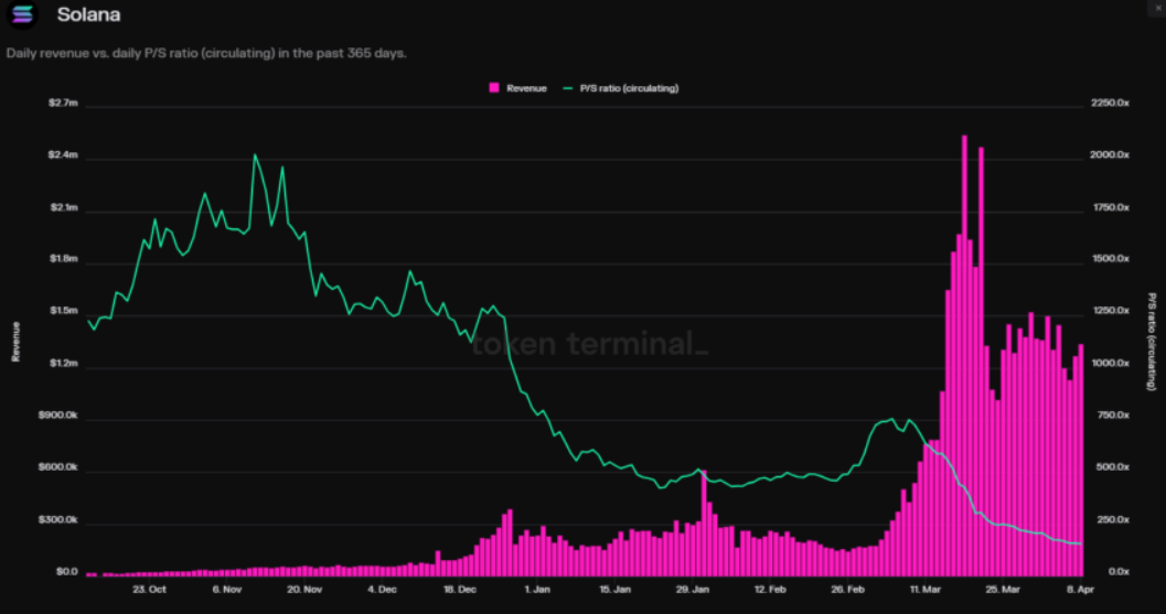 Tỷ lệ P/S của Solana | Nguồn: TokenTerminal