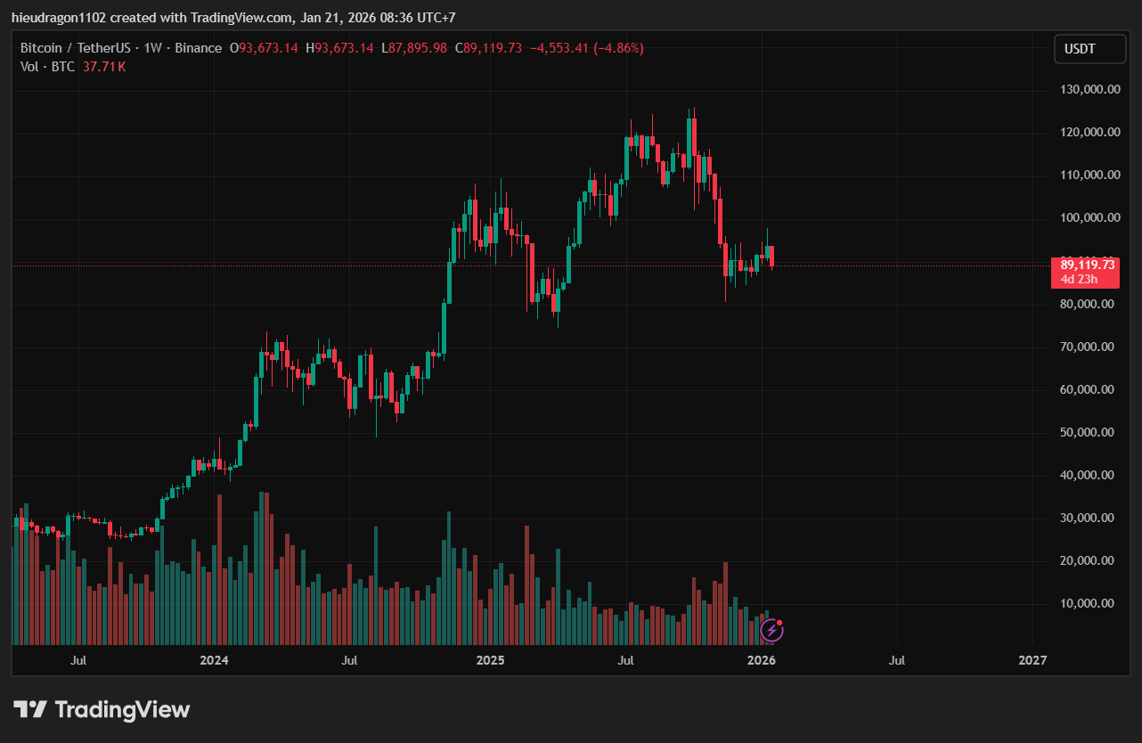 Ngược lại, Bitcoin (BTC), thường được ví như “vàng kỹ thuật số”, lại chịu áp lực giảm mạnh. Tền điện tử này đã mất mốc hỗ trợ tâm lý quan trọng 90.000 USD, cho thấy áp lực bán tăng cao và niềm tin thị trường giảm. Sự phân hóa rõ rệt giữa kim loại quý và tiền điện tử đang tạo ra bức tranh thị trường trái chiều, khiến nhà đầu tư phải cân nhắc chiến lược an toàn hơn trong ngắn hạn.