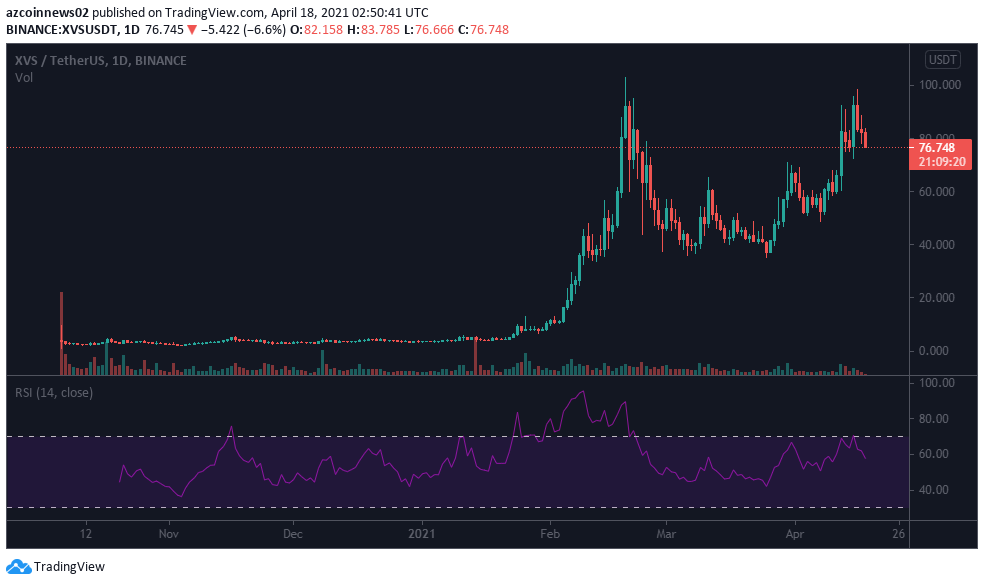 Biểu đồ hàng ngày của XVS / USDT | Nguồn: TradingView