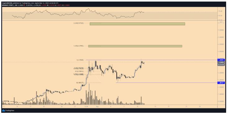 Biểu đồ 4 giờ YFI / BTC. Nguồn: TradingView