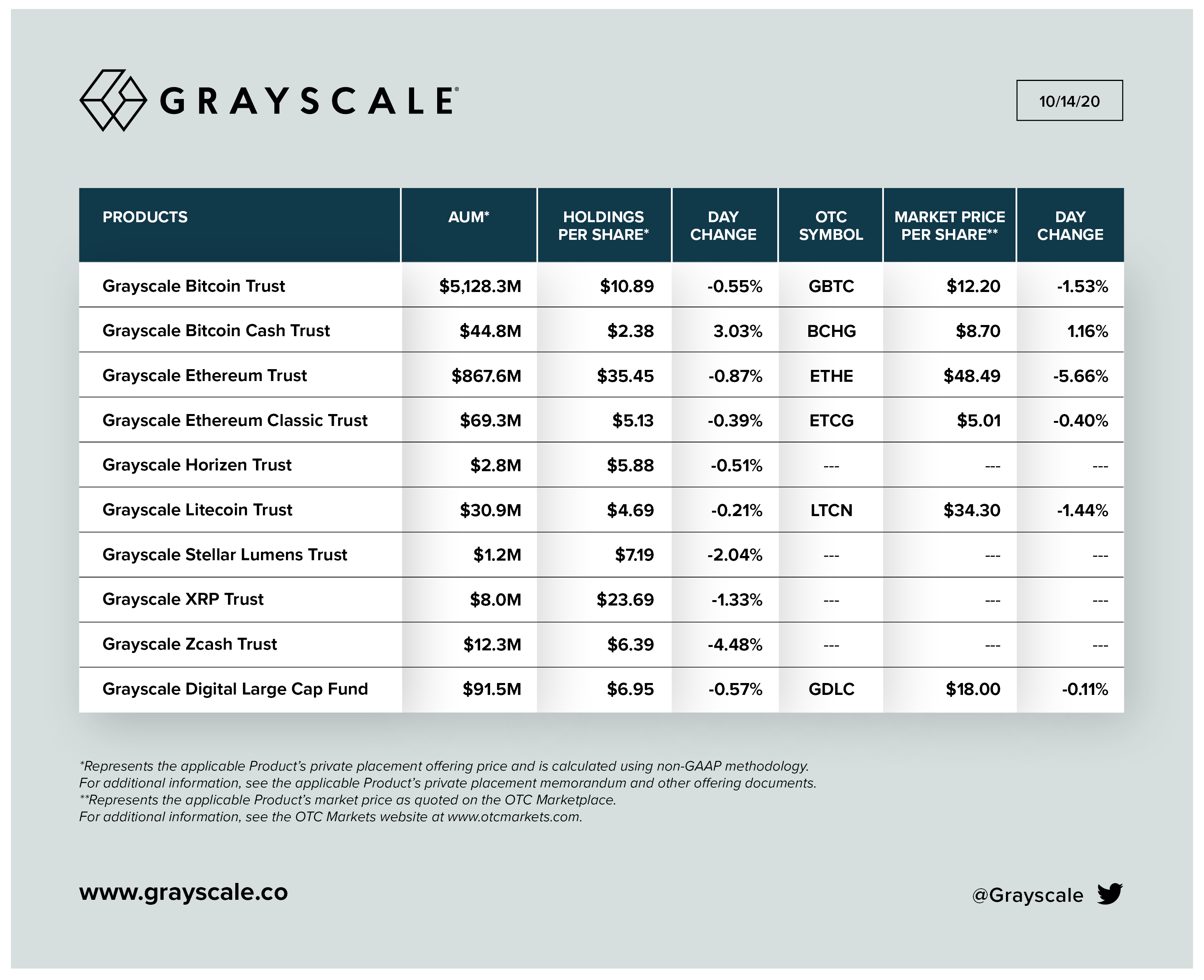 Grayscale đang có 6,3 tỷ đô la tài sản được quản lý trên 10 sản phẩm của mình tính đến ngày 14 tháng 10.