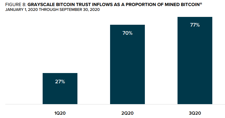 Sản phẩm phổ biến nhất của nó, Grayscale Bitcoin Trust, đã chứng kiến dòng tiền 719,3 triệu đô la trong quý thứ ba, trong khi tài sản bitcoin được quản lý (AUM) đã tăng 147% vào năm 2020.