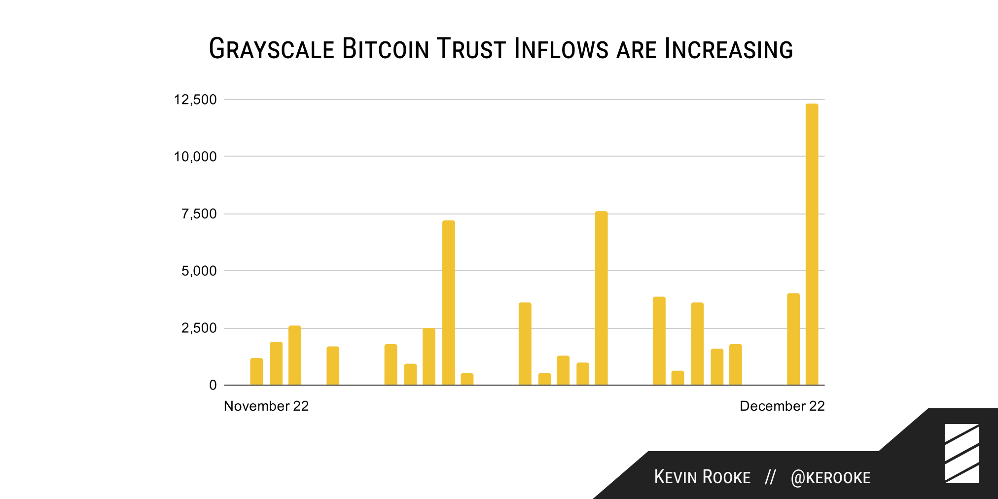 “Tin xấu cho những con gấu Bitcoin. Grayscale Bitcoin Trust vừa thêm 12.319 BTC vào GBTC chỉ trong một ngày. Đó là nhiều hơn 11.512 BTC mà họ đã thêm trong suốt tuần trước, khi Bitcoin phá vỡ ATH của nó ”.