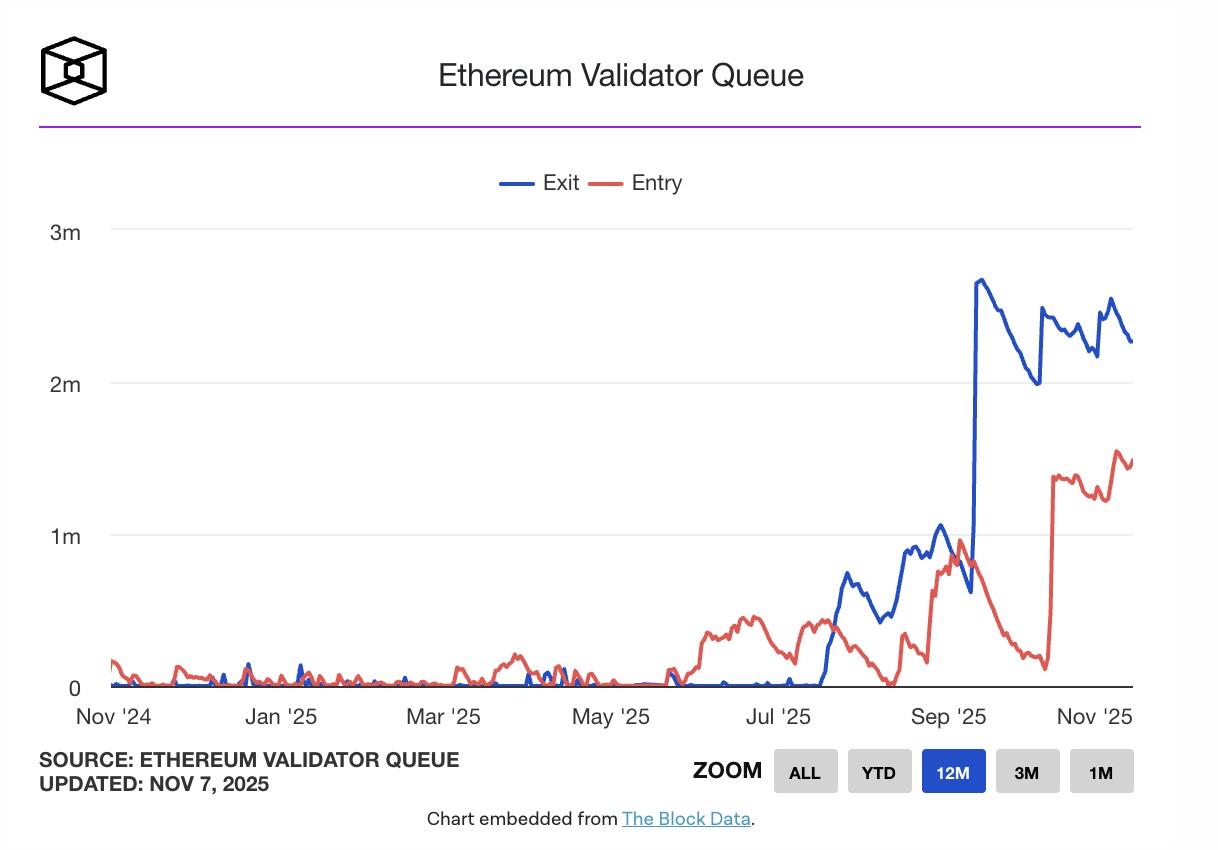 Hàng chờ trình xác thực của Ethereum tiếp tục tăng, với khoảng 1,5 triệu ETH đang chờ tham gia hệ thống staking, trong khi 2,45 triệu ETH đang nằm trong hàng chờ rút của các trình xác thực rời mạng.
