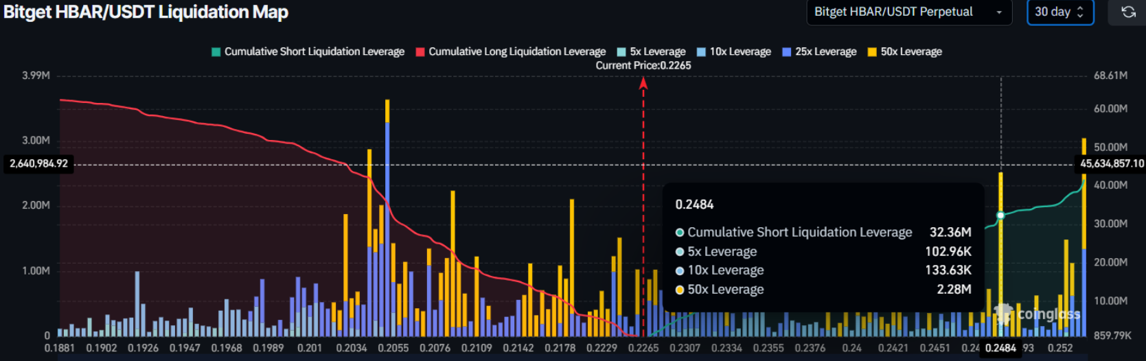 Bản đồ thanh lý HBAR | Nguồn: Coinglass