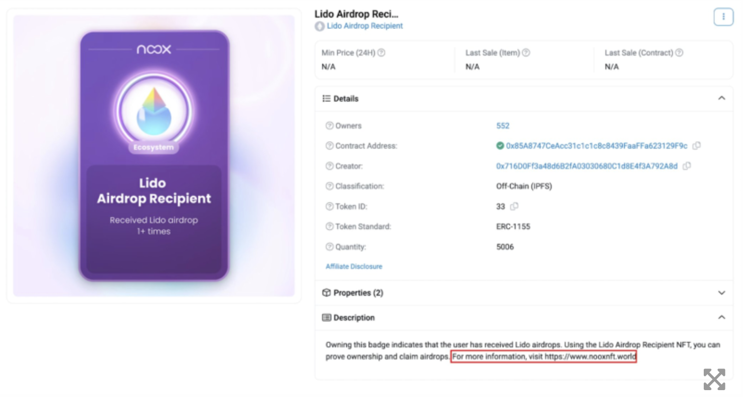 Trong một trường hợp được ghi lại, người dùng đã nhận được token Lido NFT giả mạo, tự hiển thị dưới dạng “huy hiệu” để yêu cầu một airdrop.