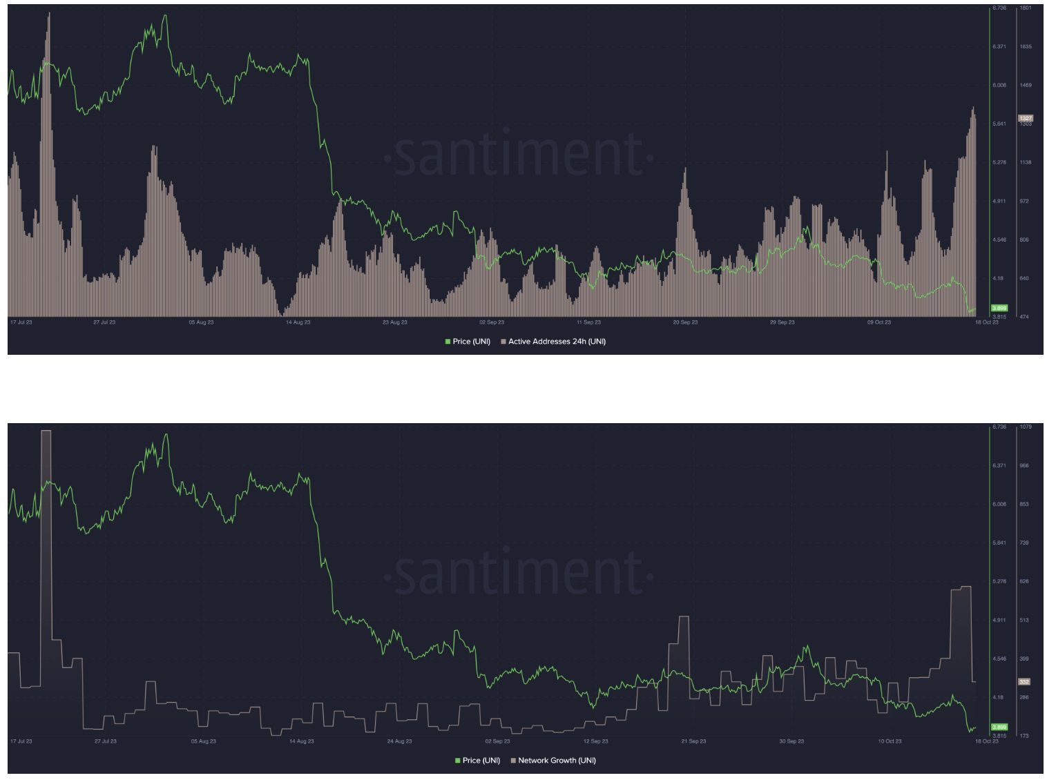 Theo thông tin chi tiết mới nhất của Santiment, có sự chênh lệch đáng chú ý ở giá UNI giảm và hoạt động onchain ngày càng tăng.