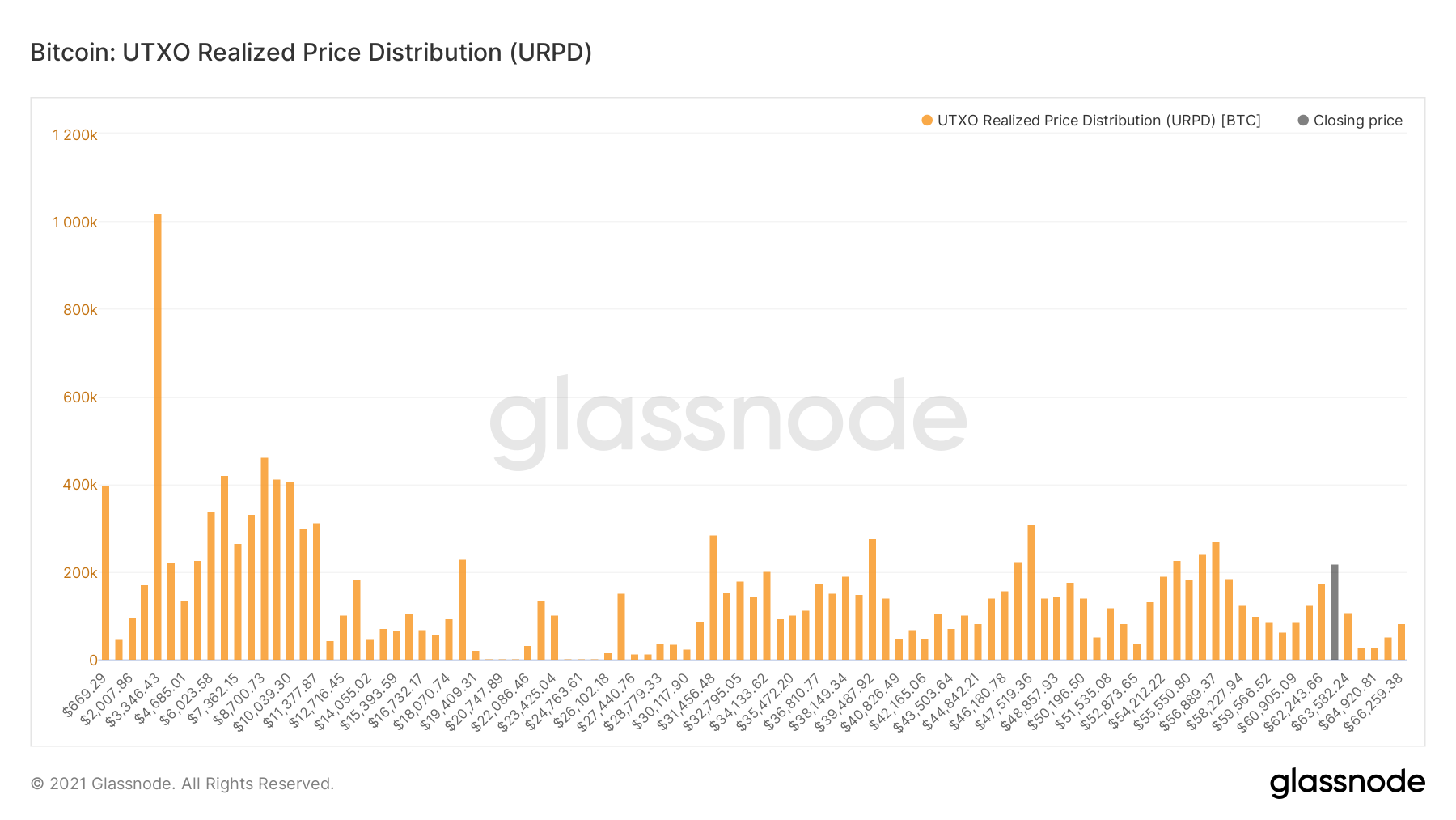 Phân phối giá thực UTXO của Bitcoin | Nguồn: Glassnode
