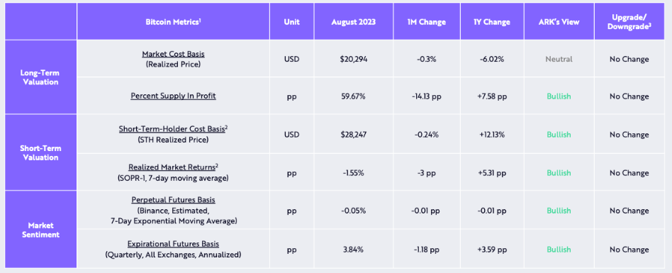Tâm lý thị trường Bitcoin và thay đổi định giá hàng tháng trong tháng 8 | Nguồn: ARK Invest