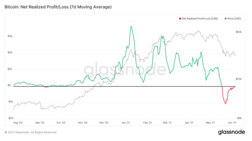 Phe gấu dường như đang kiểm soát, nhưng nhà phân tích William Clemente tin rằng những người bán đang đối mặt với tình trạng kiệt quệ. Nhiều nhà đầu tư mới đã bán lỗ, theo biểu đồ Net Realized Profit/Loss (MA 7 ngày) của Glassnode. Clemente cho biết: “Quá trình này dường như đã gần xong”.