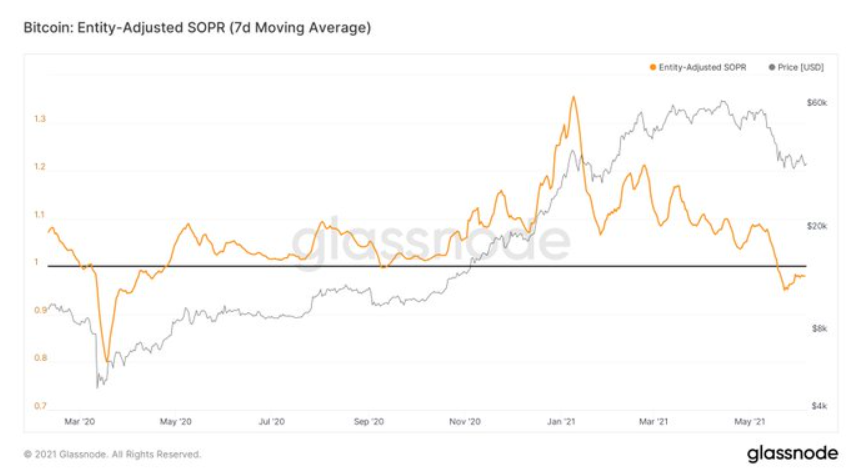Entity-Adjusted Spent Output Profit Ratio (SPOR), một số liệu được sử dụng để tính toán tỷ lệ lợi nhuận cho các đồng coin được giao dịch trong một khoảng thời gian cụ thể, dường như đã đạt đến mức đáy cục bộ trong biểu đồ hàng tuần. Clemente nói rằng chỉ số SPOR hiện tại là “thấp nhất” kể từ tháng 3 năm 2020.