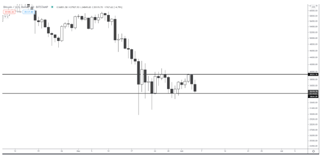 Trader Josh Rager đã đặt $ 34.640 làm mức hỗ trợ quan trọng trong biểu đồ hàng ngày. Ông nói thêm: