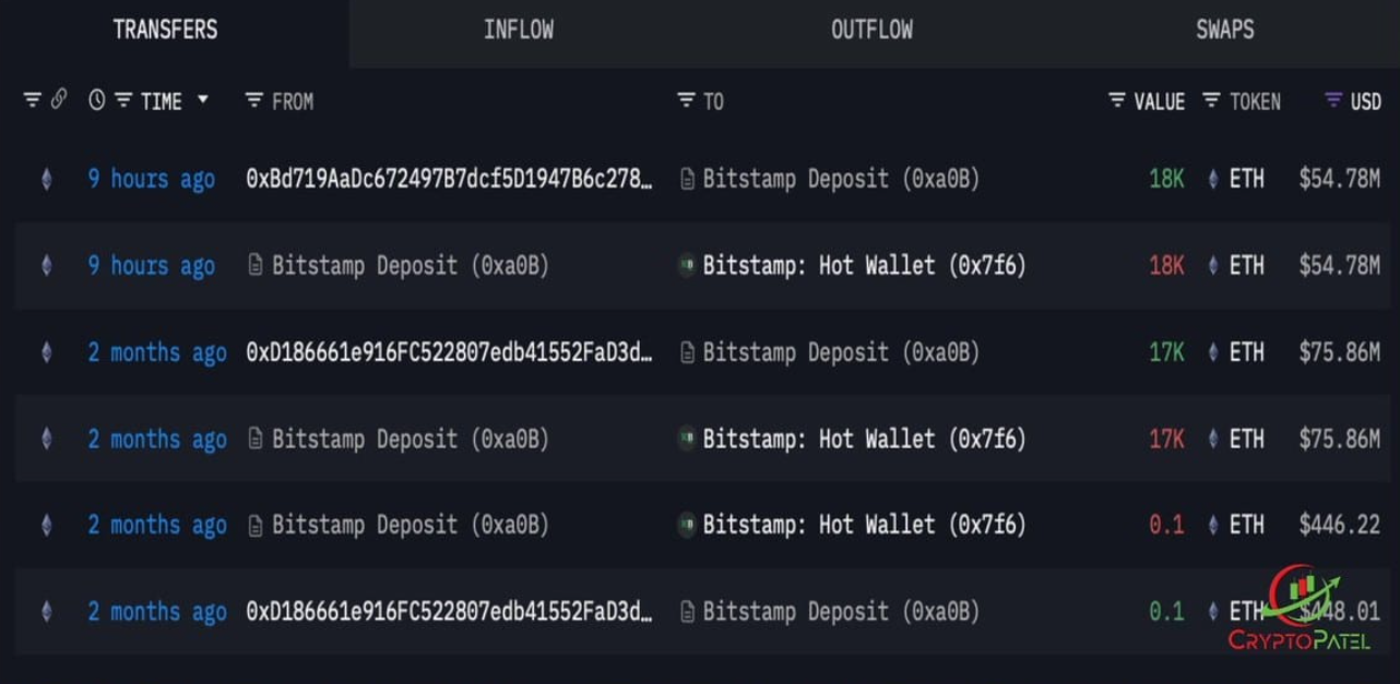 Cá voi này đang bán dần vị thế giao ngay của mình, với giao dịch mới nhất là 18.000 ETH, trị giá khoảng 54,78 triệu USD. Việc chuyển lên sàn Bitstamp được coi là tín hiệu rõ ràng cho ý định bán ra, cho thấy dòng tiền tiếp tục rời khỏi hệ sinh thái Ethereum.