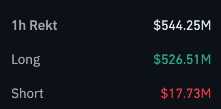 Hơn 525 triệu USD các vị thế Long Bitcoin và tiền điện tử bị thanh lý