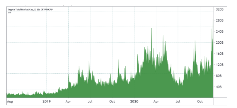Tổng khối lượng tiền điện tử hàng ngày | Nguồn: TradingView