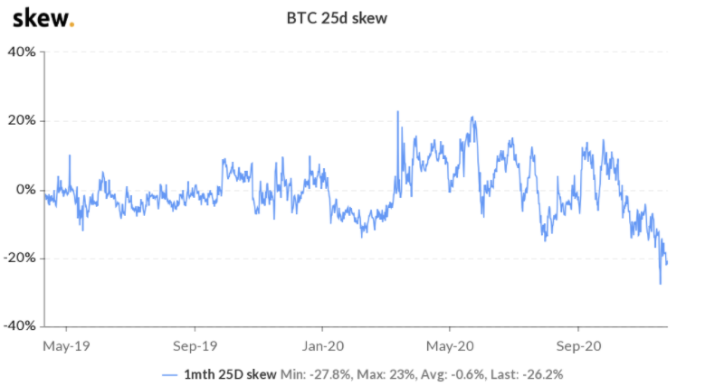 Biểu đồ trên cho thấy con số ngày 24 tháng 11 ở mức -27,5%, gần như khớp với mức thấp nhất mọi thời đại của nó. Không thể chối cãi, đây là một điều kiện cực kỳ tăng giá và dữ liệu chỉ ra rằng các trader quyền chọn không sẵn sàng bán ra.