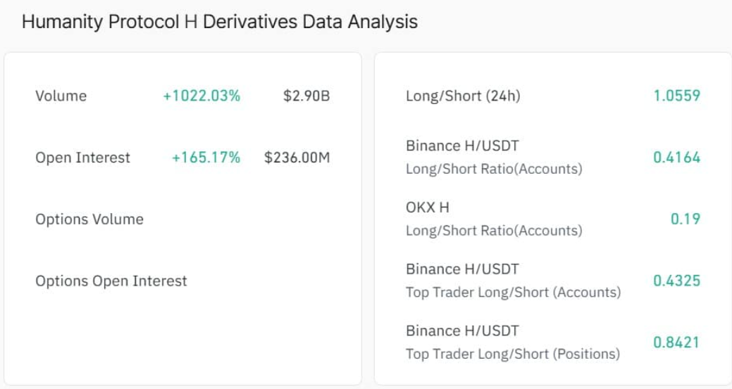 Theo dữ liệu từ CoinGlass, hợp đồng mở (OI) đã tăng tới 165%, đạt 236 triệu USD, trong khi khối lượng giao dịch phái sinh bật tăng 1.022%, lên 1,9 tỷ USD tại thời điểm viết bài.