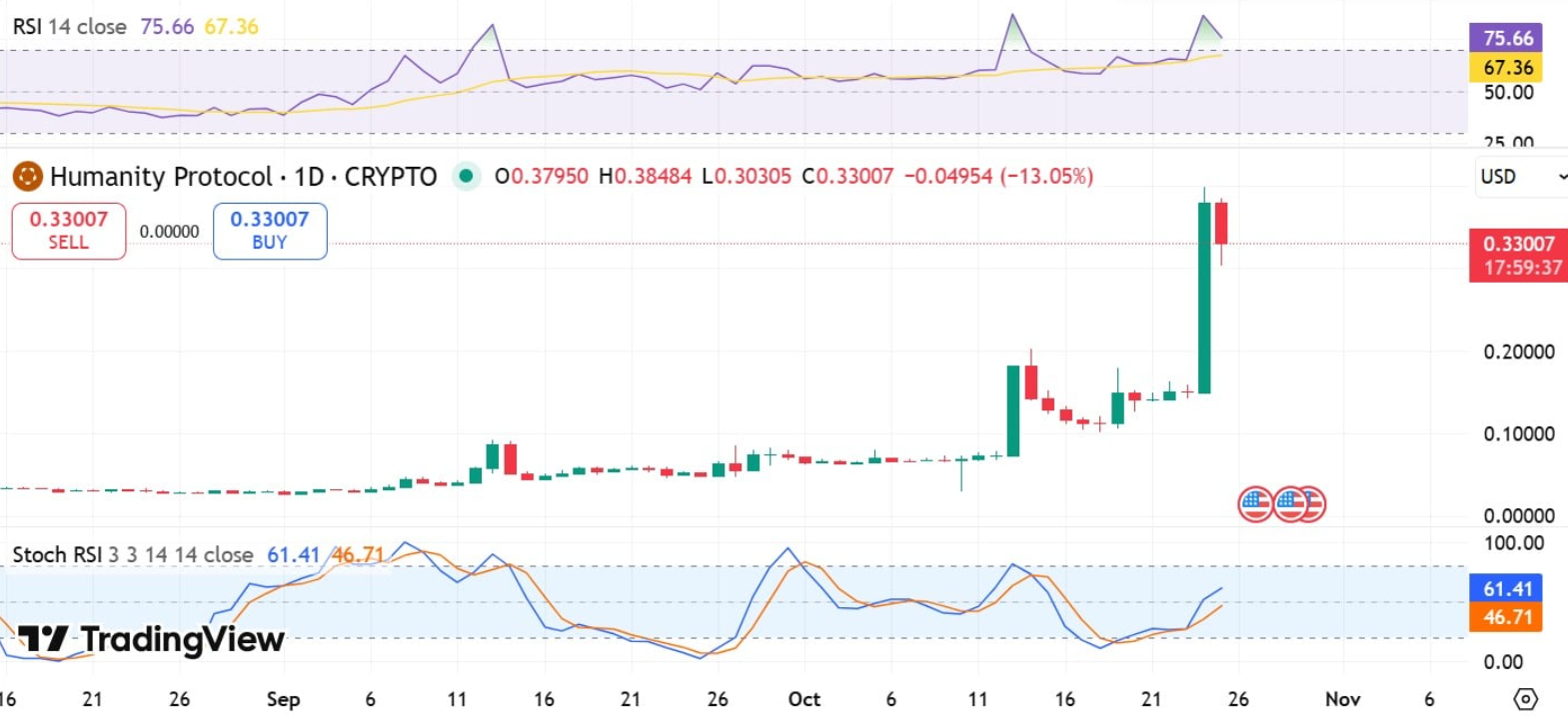 Ngay sau khi thông báo về thỏa thuận hợp tác chiến lược được công bố, làn sóng mua vào đã bùng nổ khi nhà đầu tư đổ xô tích trữ Humanity, khiến nhu cầu đối với token này tăng vọt.