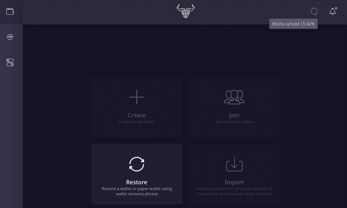 Daedalus cũng cho phép người dùng khôi phục ví Cardano bằng cách sử dụng cụm từ khôi phục.